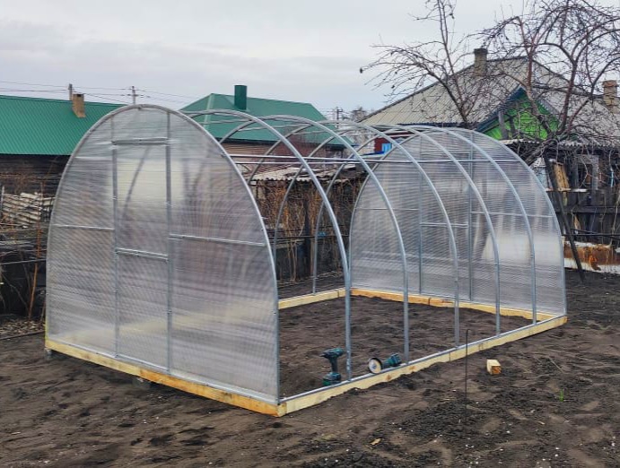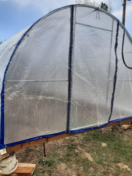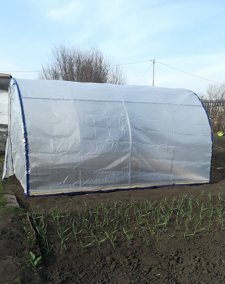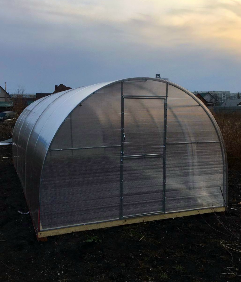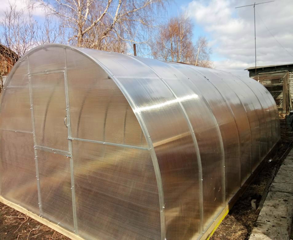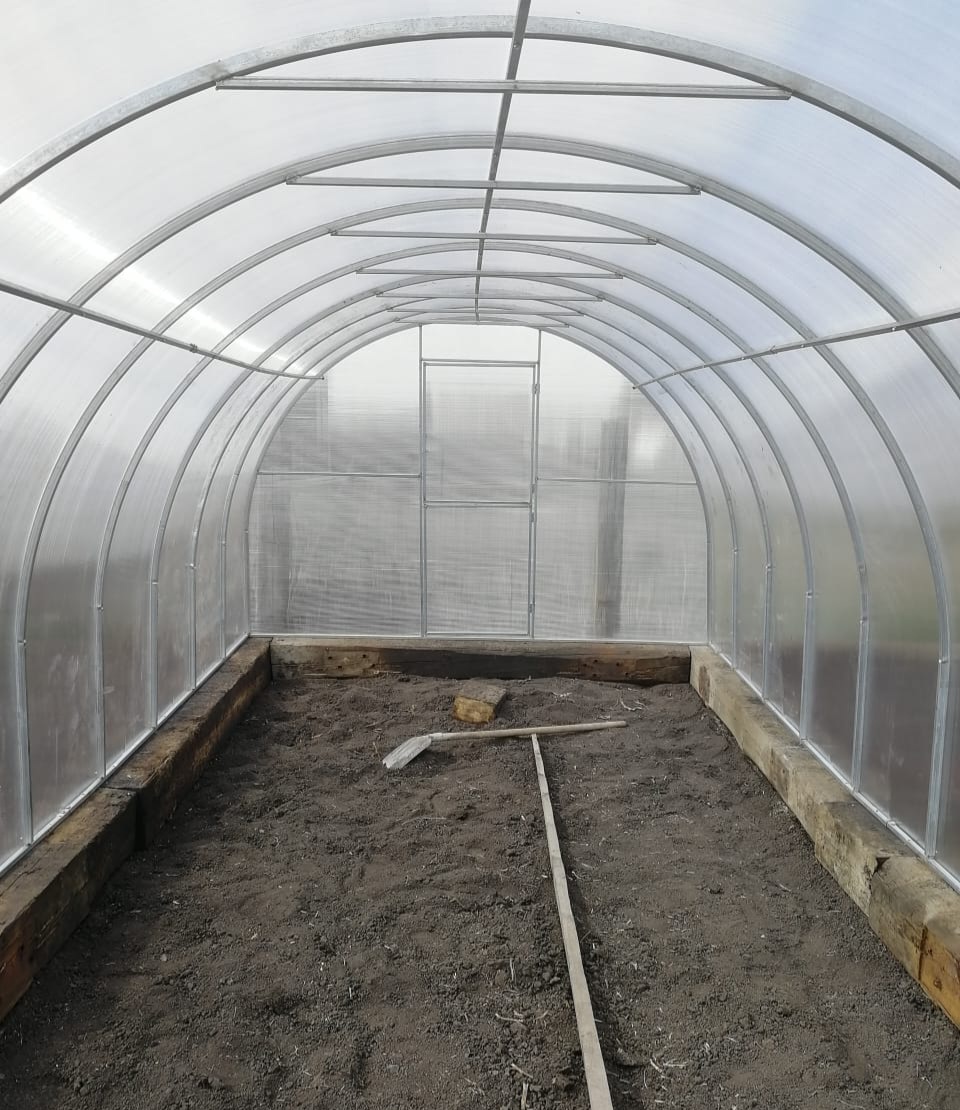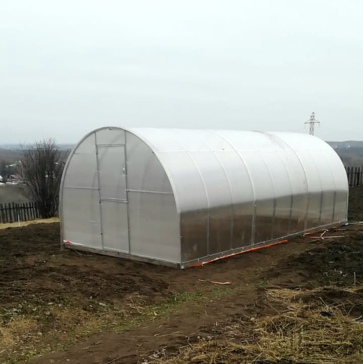 Теплица с чехлом из армированной пленки 200мк.UV защитой, что позволяет создать комфортные условия для роста и не дает солнечным лучам обжигать растения. Две двери, две форточки на замках в торцах. Чехол служит более бюджетной альтернативой сотовому поликарбонату. Каркас из профильной трубы 20х30, расстояние между дугами 1м.
